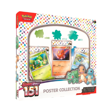 Your very own Pokémon legend unfolds! An epic journey through the Kanto region wouldn’t be complete without a first partner Pokémon! Add Bulbasaur, Charmander, and Squirtle to your team as playable foil promo cards, then work on completing your Kanto Pokédex by opening more booster packs from the special Scarlet & Violet—151 expansion. On top of it all, you’ll find a colorful poster that’s ready to hang wherever you like!