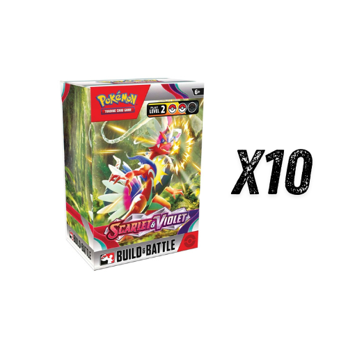You will receive one sealed display of Scarlet & Violet Base Build & Battle Boxes. Each display has 10 individual Build & Battle Boxes. Each pack is randomly inserted into the box from the manufacturer. There can be potential tears or rips on the exterior plastic of the display itself. These will ship in their own box and labels will not be affixed to the display upon shipment.
